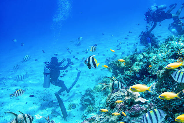 You’ll discover one of the liveliest seabed in the world, you’ll swim between the bright corals of the red sea while a Caribbean sun shines during the entire trip .Our driver will pick you up from the hotel in high-class vehicles with A/C The meeting point is in Hurghada Marina, where we’ll set sail towards Orange BAY.